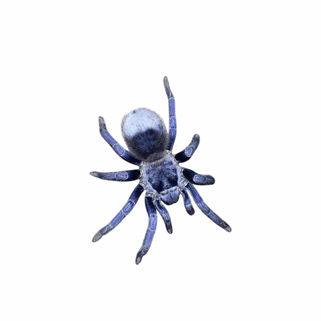 Lasiocyano sazimai, conocida como Tarántula Azul Brasileña, destaca por su intensa coloración azul metálica y su carácter terrestre. Ideal para aficionados a las tarántulas exóticas, esta especie combina belleza, comportamiento activo y gran valor en terrariofilia especializada.