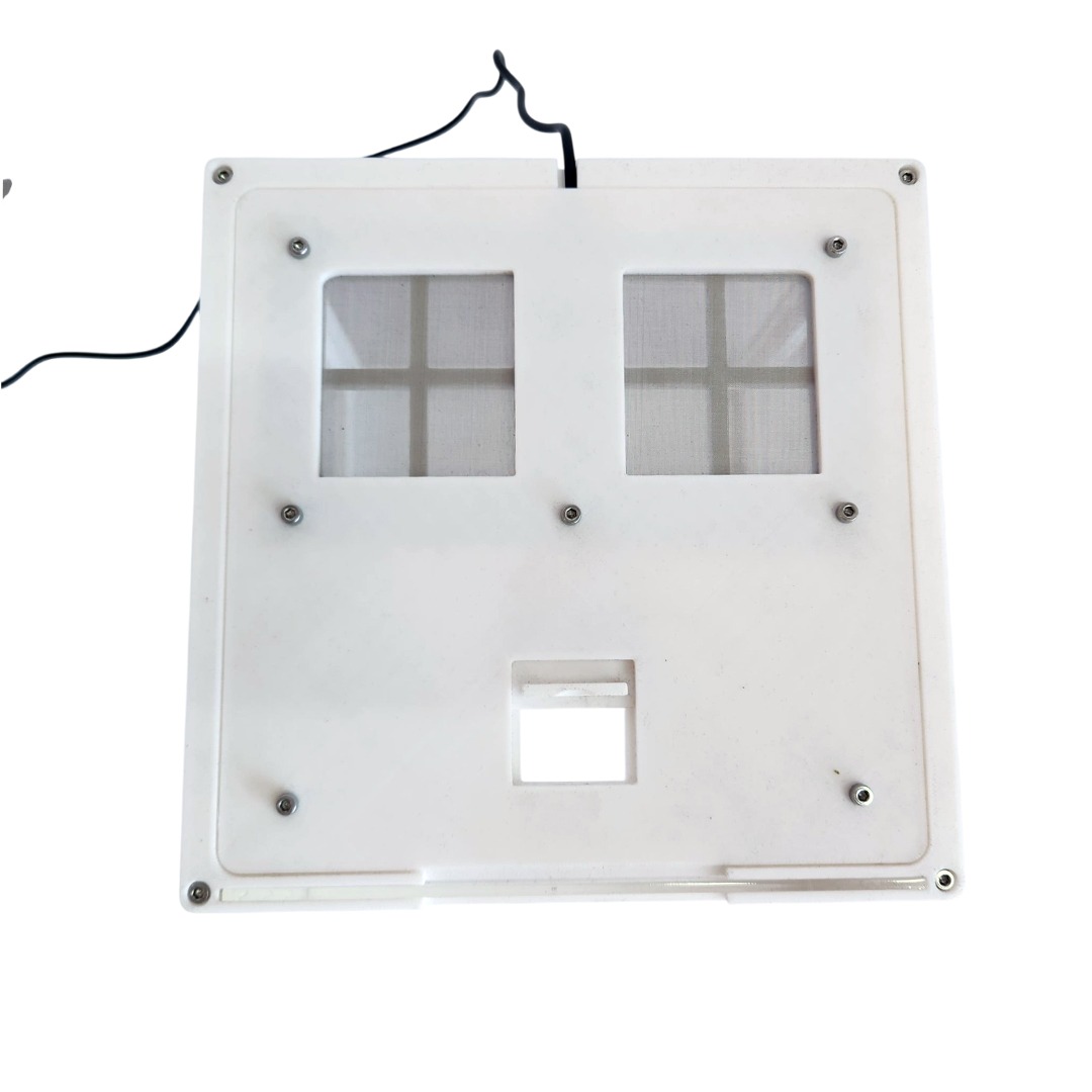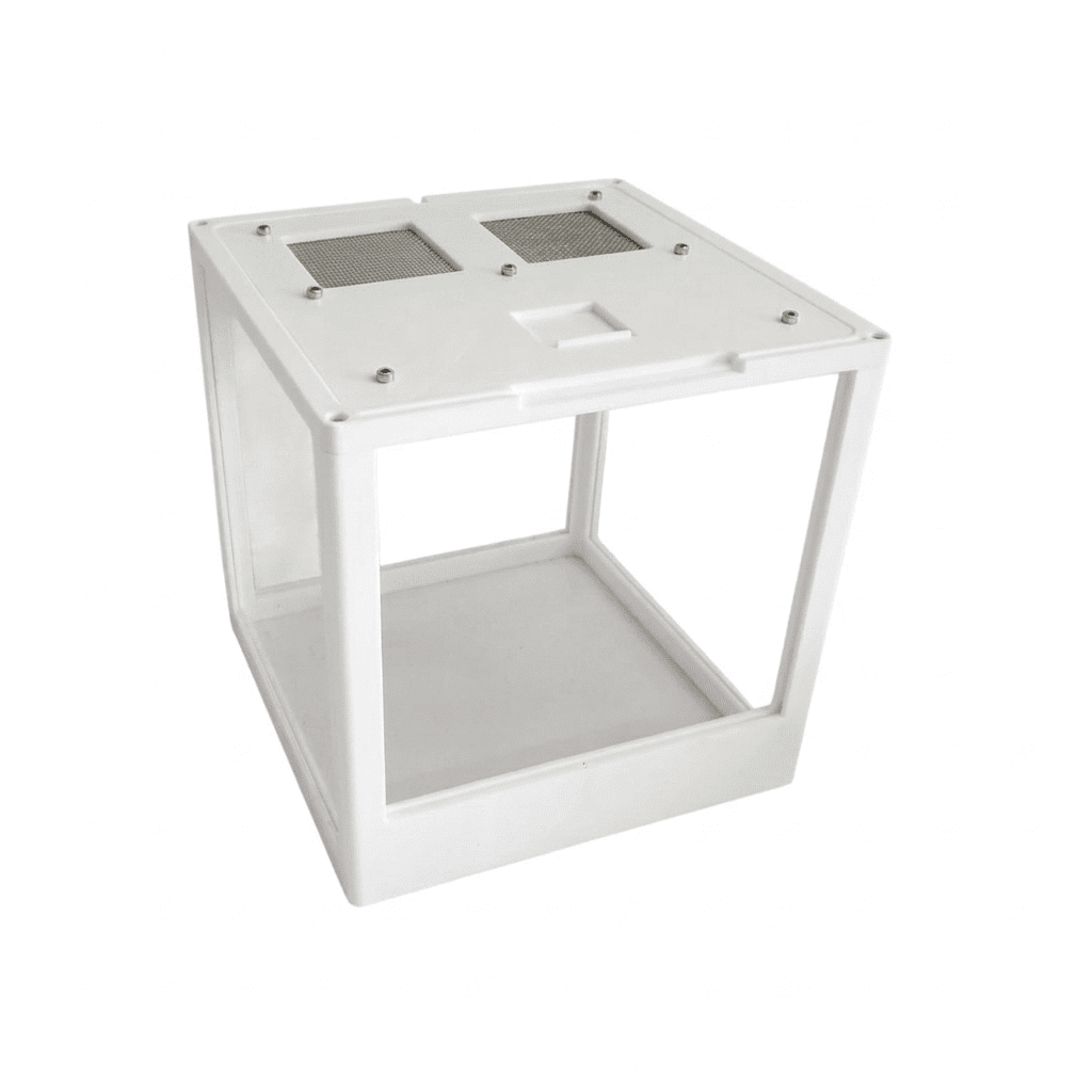 Terrario 20x20x20 para invertebrados en PLA 3D con acrílico transparente. Con ventilación superior anti fugas y luz LED incluida. Perfecto para tarántulas, isópodos, escorpiones, mantis, hormigas y más. Resistente, práctico y funcional.